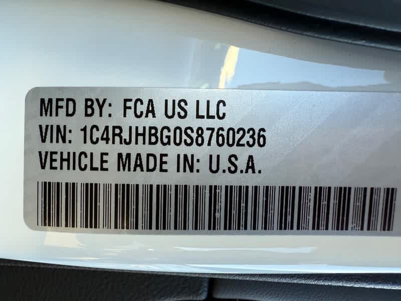WHEELS: 20 X 8.5 MACHINED/PAINTED ALUMINUM Tires: 265/50R20 BSW A/S LRR, DUAL-PANE PANORAMIC SUNROOF, TRANSMISSION: 8-SPEED AUTOMATIC (850RE) (STD), ENGINE: 3.6L V6 24V VVT UPG I W/ESS (STD). Jeep Limited with Bright White Clearcoat exterior and Global Black interior features a V6 Cylinder Engine with 293 HP at 6400 RPM*.