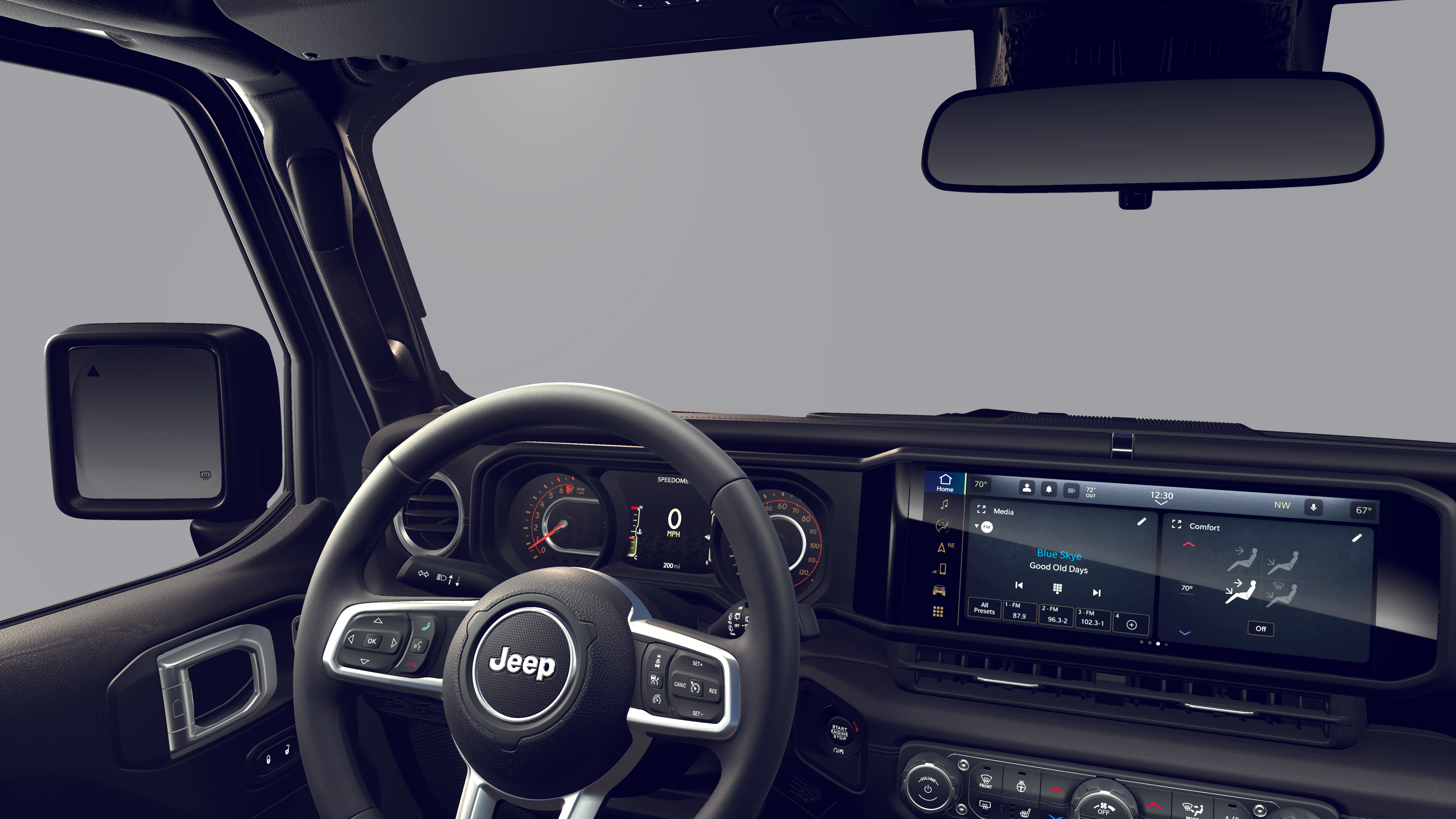 SKY ONE-TOUCH POWER TOP Rear Window Defroster, Rear Window Wiper/Washer, Removable Rear Quarter Windows, Power Top Quarter Window Storage Bag, SAHARA POPULAR EQUIPMENT GROUP Alpine Premium Audio System, Integrated Off-Road Camera, Blind Spot & Cross Path Detection, HD Radio, Rear View Auto Dim Mirror, Side Steps, Integrated Voice Command w/Bluetooth®, Uconnect 5 Nav w/12.3 Display, GPS Navigation, Auto High Beam Headlamp Control, Universal Garage Door Opener, Connected Travel & Traffic Services, ParkSense Rear Park Assist System, 3.6L V6 24V VVT UPG I ENGINE W/ESS Engine Oil Cooler, Dana M220 Rear Axle, 8-SPEED AUTOMATIC 850RE TRANSMISSION (STD), BLACK, MCKINLEY TRIMMED SEATS Hard Seat Back, Leather Wrapped Shift Knob, Power Adjust 8-Way Driver Seat, Power 4-Way Passenger Lumbar Adjust, Power Adjust 8-Way Front Passenger Seat, Leather Wrapped Park Brake Handle, Power 4-Way Driver Lumbar Adjust. Jeep Sahara with Bright White Clearcoat exterior and Black interior features a V6 Cylinder Engine with 285 HP at 6400 RPM*.