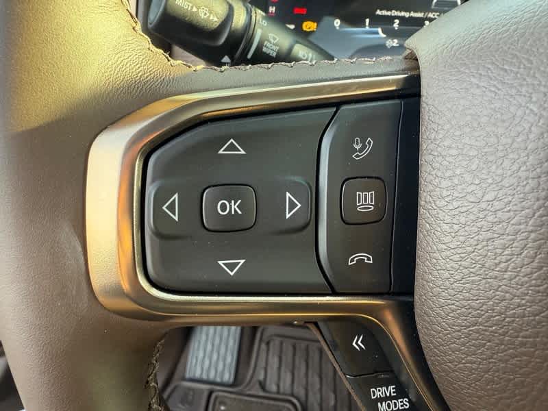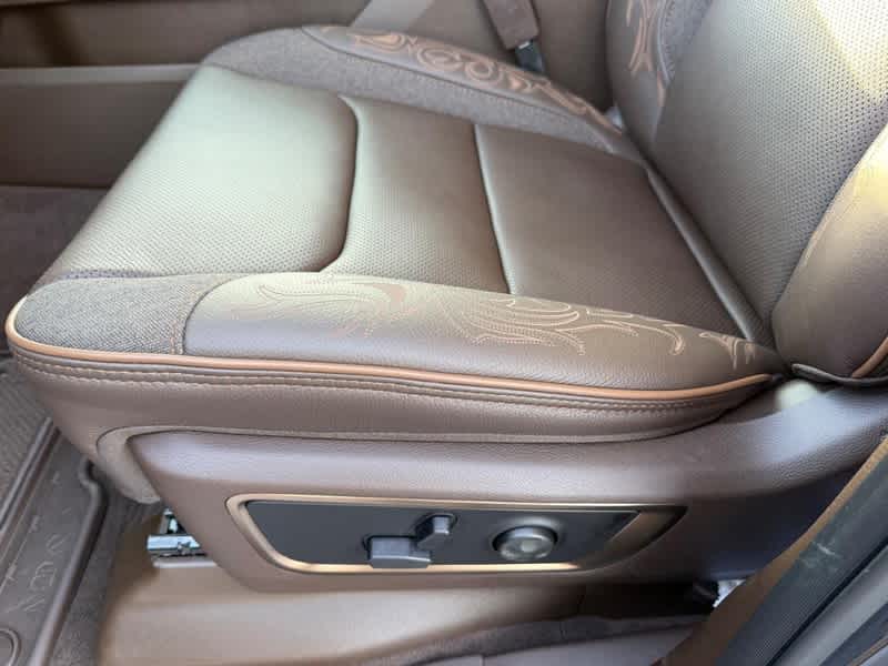 LIMITED LEVEL A EQUIPMENT GROUP Surround View Camera System, LED CHMSL Lamp, Tri-Fold Tonneau Cover, Traffic Sign Recognition, RamBox Cargo Management System, Hands-Free Active Driving Assist System, Head Up Display, Evasive Steer Assist, Drowsy Driver Detection, Exterior 115V AC Outlet, Intersection Collision Assist System, Smartphone As A Key Capable, 14.4 Touchscreen Display, Radio: Uconnect 5 Nav w/14.4 Display, 240 Amp Alternator, 12-Way/1-Way Trailer Connector, DUAL-PANE PANORAMIC SUNROOF LED Dome/Reading Lamp, Dome Dual LED Reading Lamp, QUICK ORDER PACKAGE 27K LONGHORN Engine: 5.7L V8 HEMI MDS VVT eTorque, Transmission: 8-Speed Automatic (8HP75), Grille Surround 4 Chrome Texture 5 Chrome, Warm Chrome Key Fob, Longhorn Instrument Cluster Theme 3, Premium Door Trim Panel, Longhorn Badge, TRANSMISSION: 8-SPEED AUTOMATIC (8HP75) (STD), ENGINE: 5.7L V8 HEMI MDS VVT ETORQUE 48V Belt Starter Generator, Heavy Duty Engine Cooling, Passive Tuned Mass Damper, Delete Alternator, G/T Exhaust, 18 Aluminum Spare Wheel. Ram Longhorn with Forged Blue Metallic exterior and Bison Brown interior features a 8 Cylinder Engine with 395 HP at 5600 RPM*.