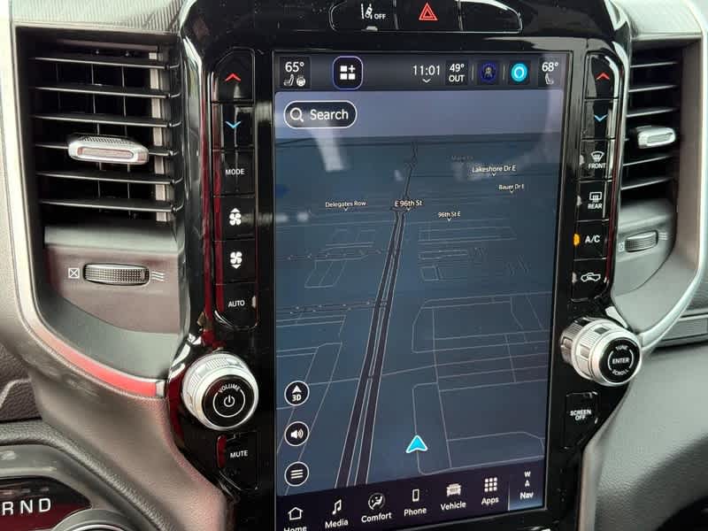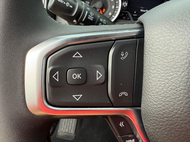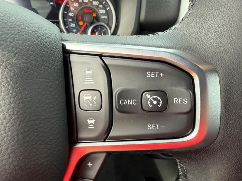 BIG HORN LEVEL 2 EQUIPMENT GROUP SiriusXM Radio Service, Power Adjustable Pedals, Leather Wrapped Steering Wheel, 12 Touchscreen Display, Glove Box Lamp, Auto Power-Folding Mirrors, 115V Auxiliary Rear Power Outlet, Media Hub w/2 Charge Only USBs, Heated Front Seats, Security Alarm, Black Premium Power Mirrors, Premium Overhead Console, 9 Amplified Speakers w/Subwoofer, Disassociated Touchscreen Display, Body Color Fender Flares, Remote Tailgate Release, 115V Auxiliary Power Outlet, LED Dome Lamp w/On/Off Switch, Universal Garage Door Opener, 2nd Row In Floor Storage Bins, Sun Visors w/Illuminated Vanity Mirrors, LED Footwell Lighting, Rear Window Defroster, Rear View Auto Dim Mirror, Rear Power Sliding Window, GPS Navigation, Overhead LED Lamps, Wheels: 20 x 9 Aluminum Chrome Clad, ENGINE: 5.7L V8 HEMI MDS VVT ETORQUE Active Noise Control System, Heavy Duty Engine Cooling, Passive Tuned Mass Damper, GVWR: 7,100 lbs, Dual Rear Exhaust w/Bright Tips, G/T Exhaust, 18 Aluminum Spare Wheel, NIGHT EDITION Tires: 275/55R20 OWL All Season, Bridgestone Brand Tires, Accent Color Premium Power Mirrors, Exterior Mirrors w/Supplemental Signals, Black Headlamp Bezels, Exterior Mirrors Courtesy Lamps, Grille Black Surround Black Mesh, Auto Power-Folding Mirrors, Wheels: 20 x 9.0 Aluminum Painted Clad, Auto Dim Exterior Driver Mirror, Black Exterior Truck Badging, Anti-Spin Differential Rear Axle, Accent Color Door Handles, Accent Color Tailgate Handle, Black Interior Accents, Dual Exhaust w/Black Tips, Body Color Front Bumper, Body Color Rear Bumper w/Step Pads, Black Tail Lamp Bezels, RAM Grille Badge - Black, Black Painted Exterior Mirrors Caps, BED UTILITY GROUP MOPAR Spray In Bedliner, MOPAR 4 Adjustable Cargo Tie-Down Hooks, Pick-Up Box Lighting, Exterior 115V AC Outlet, SURROUND VIEW CAMERA SYSTEM 12-Way/1-Way Trailer Connector, MOPAR FRONT & REAR RUBBER FLOOR MATS, TRANSMISSION: 8-SPEED AUTOMATIC (8HP75). Ram Big Horn with Diamond Black Crystal Pearlcoat exterior and Black interior features a 8 Cylinder Engine with 395 HP at 5600 RPM*.