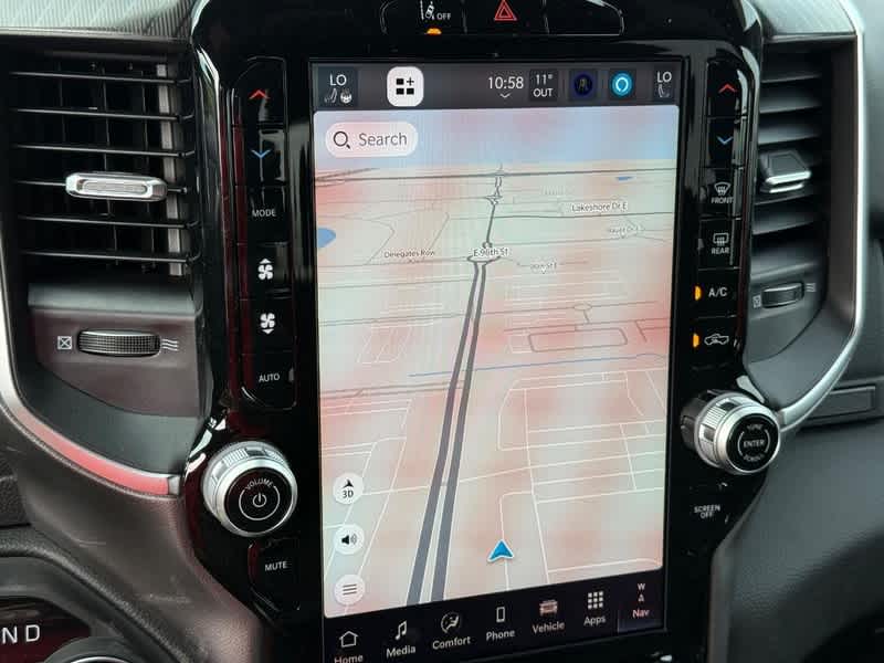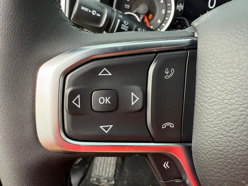 BIG HORN LEVEL 2 EQUIPMENT GROUP SiriusXM Radio Service, Power Adjustable Pedals, Leather Wrapped Steering Wheel, 12 Touchscreen Display, Glove Box Lamp, Auto Power-Folding Mirrors, 115V Auxiliary Rear Power Outlet, Media Hub w/2 Charge Only USBs, Heated Front Seats, Security Alarm, Black Premium Power Mirrors, Premium Overhead Console, 9 Amplified Speakers w/Subwoofer, Disassociated Touchscreen Display, Body Color Fender Flares, Remote Tailgate Release, 115V Auxiliary Power Outlet, LED Dome Lamp w/On/Off Switch, Universal Garage Door Opener, 2nd Row In Floor Storage Bins, Sun Visors w/Illuminated Vanity Mirrors, LED Footwell Lighting, Rear Window Defroster, Rear View Auto Dim Mirror, Rear Power Sliding Window, GPS Navigation, Overhead LED Lamps, Wheels: 20 x 9 Aluminum Chrome Clad, ENGINE: 5.7L V8 HEMI MDS VVT ETORQUE Active Noise Control System, Heavy Duty Engine Cooling, Passive Tuned Mass Damper, GVWR: 7,100 lbs, Dual Rear Exhaust w/Bright Tips, G/T Exhaust, 18 Aluminum Spare Wheel, NIGHT EDITION Tires: 275/55R20 OWL All Season, Bridgestone Brand Tires, Accent Color Premium Power Mirrors, Exterior Mirrors w/Supplemental Signals, Black Headlamp Bezels, Exterior Mirrors Courtesy Lamps, Grille Black Surround Black Mesh, Auto Power-Folding Mirrors, Wheels: 20 x 9.0 Aluminum Painted Clad, Auto Dim Exterior Driver Mirror, Black Exterior Truck Badging, Anti-Spin Differential Rear Axle, Accent Color Door Handles, Accent Color Tailgate Handle, Black Interior Accents, Dual Exhaust w/Black Tips, Body Color Front Bumper, Body Color Rear Bumper w/Step Pads, Black Tail Lamp Bezels, RAM Grille Badge - Black, Black Painted Exterior Mirrors Caps, BED UTILITY GROUP MOPAR Spray In Bedliner, MOPAR 4 Adjustable Cargo Tie-Down Hooks, Pick-Up Box Lighting, Exterior 115V AC Outlet, SURROUND VIEW CAMERA SYSTEM 12-Way/1-Way Trailer Connector, MOPAR FRONT & REAR RUBBER FLOOR MATS, TRANSMISSION: 8-SPEED AUTOMATIC (8HP75). Ram Big Horn with Granite Crystal Metallic Clearcoat exterior and Black interior features a 8 Cylinder Engine with 395 HP at 5600 RPM*.
