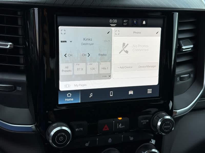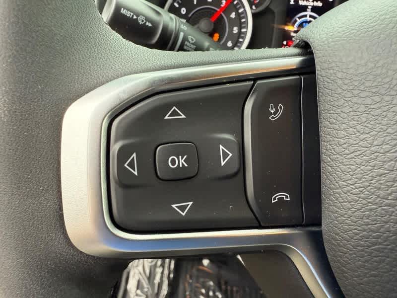 BIG HORN LEVEL 1 EQUIPMENT GROUP SiriusXM Radio Service, Rear Window Defroster, Rear View Auto Dim Mirror, Power Adjustable Pedals, Leather Wrapped Steering Wheel, Rear Power Sliding Window, Rear Dome w/On/Off Switch Lamp, Glove Box Lamp, Auto Power-Folding Mirrors, Auto Dim Exterior Driver Mirror, Heated Front Seats, Heated Steering Wheel, Black Premium Power Mirrors, SiriusXM Satellite Radio, 400W Inverter, Secondary Active Grille Shutters, Exterior Mirrors w/Supplemental Signals, Steering Wheel Mounted Audio Controls, Exterior Mirrors Courtesy Lamps, Body Color Fender Flares, 115V Auxiliary Power Outlet, Universal Garage Door Opener, 2nd Row In Floor Storage Bins, Sun Visors w/Illuminated Vanity Mirrors, MOPAR FRONT & REAR RUBBER FLOOR MATS, TRANSMISSION: 8-SPEED AUTOMATIC (8HP75), ENGINE: 5.7L V8 HEMI MDS VVT ETORQUE Active Noise Control System, Heavy Duty Engine Cooling, Passive Tuned Mass Damper, GVWR: 7,100 lbs, Dual Rear Exhaust w/Bright Tips, G/T Exhaust, 18 Aluminum Spare Wheel, 33 Gallon Fuel Tank. Ram Big Horn with Diamond Black Crystal Pearlcoat exterior and Black interior features a 8 Cylinder Engine with 305 HP at 6400 RPM*.