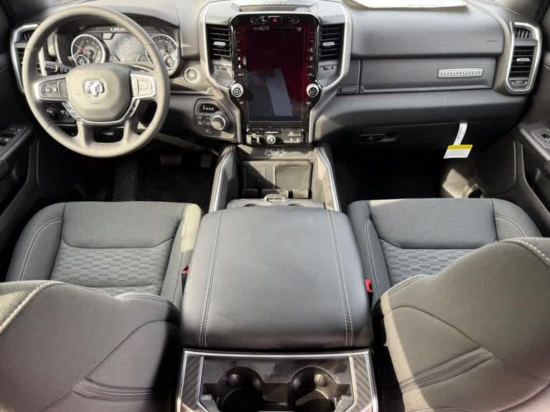 ENGINE: 5.7L V8 HEMI MDS VVT ETORQUE Active Noise Control System, Heavy Duty Engine Cooling, Passive Tuned Mass Damper, GVWR: 7,100 lbs, Dual Rear Exhaust w/Bright Tips, G/T Exhaust, 18 Aluminum Spare Wheel, BIG HORN LEVEL 2 EQUIPMENT GROUP SiriusXM Radio Service, Power Adjustable Pedals, Leather Wrapped Steering Wheel, 12 Touchscreen Display, Glove Box Lamp, Auto Power-Folding Mirrors, 115V Auxiliary Rear Power Outlet, Media Hub w/2 Charge Only USBs, Heated Front Seats, Security Alarm, Black Premium Power Mirrors, Premium Overhead Console, 9 Amplified Speakers w/Subwoofer, Disassociated Touchscreen Display, Body Color Fender Flares, Remote Tailgate Release, 115V Auxiliary Power Outlet, LED Dome Lamp w/On/Off Switch, Universal Garage Door Opener, 2nd Row In Floor Storage Bins, Sun Visors w/Illuminated Vanity Mirrors, LED Footwell Lighting, Rear Window Defroster, Rear View Auto Dim Mirror, Rear Power Sliding Window, GPS Navigation, Overhead LED Lamps, Wheels: 20 x 9 Aluminum Chrome Clad, SURROUND VIEW CAMERA SYSTEM 12-Way/1-Way Trailer Connector, MOPAR FRONT & REAR RUBBER FLOOR MATS, TRANSMISSION: 8-SPEED AUTOMATIC (8HP75). Ram Big Horn with Canyon Lake exterior and Black interior features a 8 Cylinder Engine with 395 HP at 5600 RPM*.