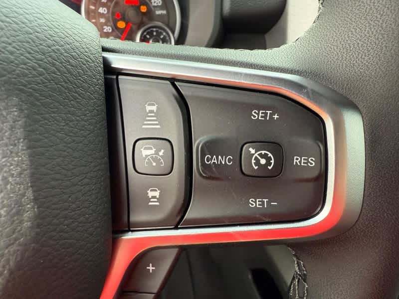 BIG HORN LEVEL 2 EQUIPMENT GROUP SiriusXM Radio Service, Power Adjustable Pedals, Leather Wrapped Steering Wheel, 12 Touchscreen Display, Glove Box Lamp, Auto Power-Folding Mirrors, 115V Auxiliary Rear Power Outlet, Media Hub w/2 Charge Only USBs, Heated Front Seats, Security Alarm, Black Premium Power Mirrors, Premium Overhead Console, 9 Amplified Speakers w/Subwoofer, Disassociated Touchscreen Display, Body Color Fender Flares, Remote Tailgate Release, 115V Auxiliary Power Outlet, LED Dome Lamp w/On/Off Switch, Universal Garage Door Opener, 2nd Row In Floor Storage Bins, Sun Visors w/Illuminated Vanity Mirrors, LED Footwell Lighting, Rear Window Defroster, Rear View Auto Dim Mirror, Rear Power Sliding Window, GPS Navigation, Overhead LED Lamps, Wheels: 20 x 9 Aluminum Chrome Clad, ENGINE: 5.7L V8 HEMI MDS VVT ETORQUE Active Noise Control System, Heavy Duty Engine Cooling, Passive Tuned Mass Damper, GVWR: 7,100 lbs, Dual Rear Exhaust w/Bright Tips, G/T Exhaust, 18 Aluminum Spare Wheel, SURROUND VIEW CAMERA SYSTEM 12-Way/1-Way Trailer Connector, MOPAR FRONT & REAR RUBBER FLOOR MATS, TRANSMISSION: 8-SPEED AUTOMATIC (8HP75). Ram Big Horn with Diamond Black Crystal Pearlcoat exterior and Black interior features a 8 Cylinder Engine with 395 HP at 5600 RPM*.