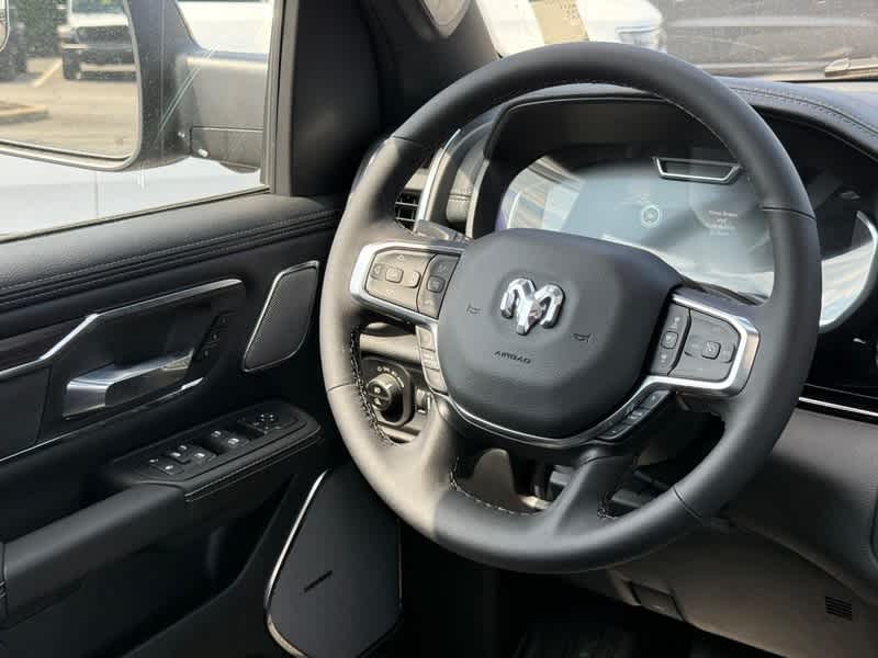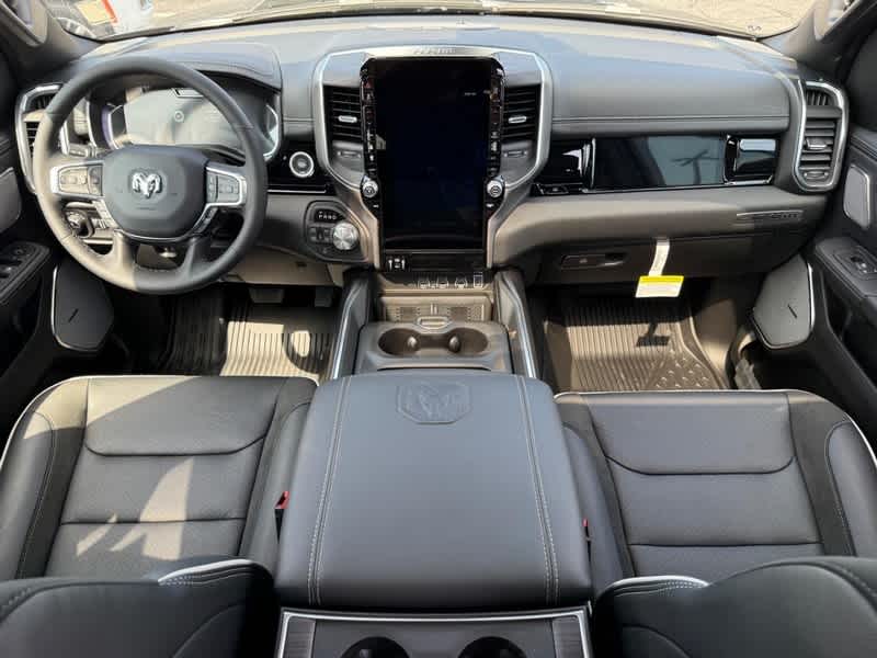 NIGHT EDITION Black Headlamp Bezels, Wheels: 22 x 9 Forged Aluminum, Tires: 285/45R22XL BSW All Season, Pirelli Brand Tires, Proximity Approach/Departure Lamps, Anti-Spin Differential Rear Axle, Accent Color Door Handles, Black Interior Accents, Body Color Front Bumper, Grille Surround 3 Black Texture 2 Black, Body Color Rear Bumper w/Step Pads, RAM Grille Badge - Black, Black Painted Exterior Mirrors Caps, Exterior Mirrors Approach Lamps, Accent Color Premium Power Mirrors, Sport Performance Hood, Black Exterior Truck Badging, Accent Color Tailgate Handle, Dual Exhaust w/Black Tips, Black Tail Lamp Bezels, LARAMIE LEVEL 2 EQUIPMENT GROUP Rain Sensitive Windshield Wipers, Front Passenger Interactive Display, Secondary Active Grille Shutters, Smartphone As A Key Capable, 14.4 Touchscreen Display, Dual Wireless Charging Pad, Radio: Uconnect 5 Nav w/14.4 Display, harman/kardon® 19 Speaker Premium Sound, Cluster 12 TFT Color Display, Power Tailgate, POWER DEPLOYABLE RUNNING BOARDS, BED UTILITY GROUP MOPAR Spray In Bedliner, MOPAR 4 Adjustable Cargo Tie-Down Hooks, Exterior 115V AC Outlet, TRI-FOLD TONNEAU COVER, MOPAR FRONT & REAR RUBBER FLOOR MATS, TRANSMISSION: 8-SPEED AUTOMATIC (8HP75) (STD), ENGINE: 3.0L I6 HURRICANE SO TWIN TURBO ESS (STD), DUAL-PANE PANORAMIC SUNROOF LED Dome/Reading Lamp, Dome Dual LED Reading Lamp. Ram Laramie with Diamond Black Crystal Pearlcoat exterior and Black interior features a Straight 6 Cylinder Engine with 420 HP at 5200 RPM*.