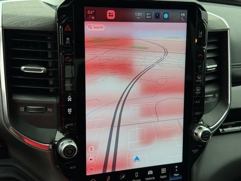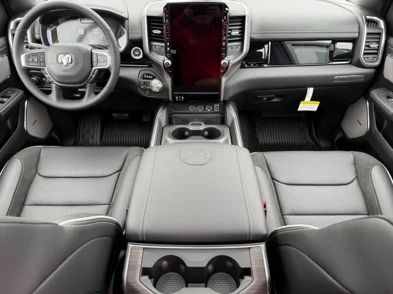 NIGHT EDITION Black Headlamp Bezels, Wheels: 22 x 9 Forged Aluminum, Tires: 285/45R22XL BSW All Season, Pirelli Brand Tires, Proximity Approach/Departure Lamps, Anti-Spin Differential Rear Axle, Accent Color Door Handles, Black Interior Accents, Body Color Front Bumper, Grille Surround 3 Black Texture 2 Black, Body Color Rear Bumper w/Step Pads, RAM Grille Badge - Black, Black Painted Exterior Mirrors Caps, Exterior Mirrors Approach Lamps, Accent Color Premium Power Mirrors, Sport Performance Hood, Black Exterior Truck Badging, Accent Color Tailgate Handle, Dual Exhaust w/Black Tips, Black Tail Lamp Bezels, LARAMIE LEVEL 2 EQUIPMENT GROUP Rain Sensitive Windshield Wipers, 14.4 Touchscreen Display, Front Passenger Interactive Display, Radio: Uconnect 5 Nav w/14.4 Display, harman/kardon® 19 Speaker Premium Sound, Cluster 12 TFT Color Display, Power Tailgate, DUAL-PANE PANORAMIC SUNROOF LED Dome/Reading Lamp, Dome Dual LED Reading Lamp, POWER DEPLOYABLE RUNNING BOARDS, ENGINE: 5.7L V8 HEMI MDS VVT ETORQUE 48V Belt Starter Generator, Heavy Duty Engine Cooling, Passive Tuned Mass Damper, Delete Alternator, Passive Cold End Exhaust, 18 Aluminum Spare Wheel, BED UTILITY GROUP MOPAR Spray In Bedliner, MOPAR 4 Adjustable Cargo Tie-Down Hooks, Exterior 115V AC Outlet, TRI-FOLD TONNEAU COVER, MOPAR FRONT & REAR RUBBER FLOOR MATS, TRANSMISSION: 8-SPEED AUTOMATIC (8HP75) (STD). Ram Laramie with Diamond Black Crystal Pearlcoat exterior and Black interior features a 8 Cylinder Engine with 395 HP at 5600 RPM*.
