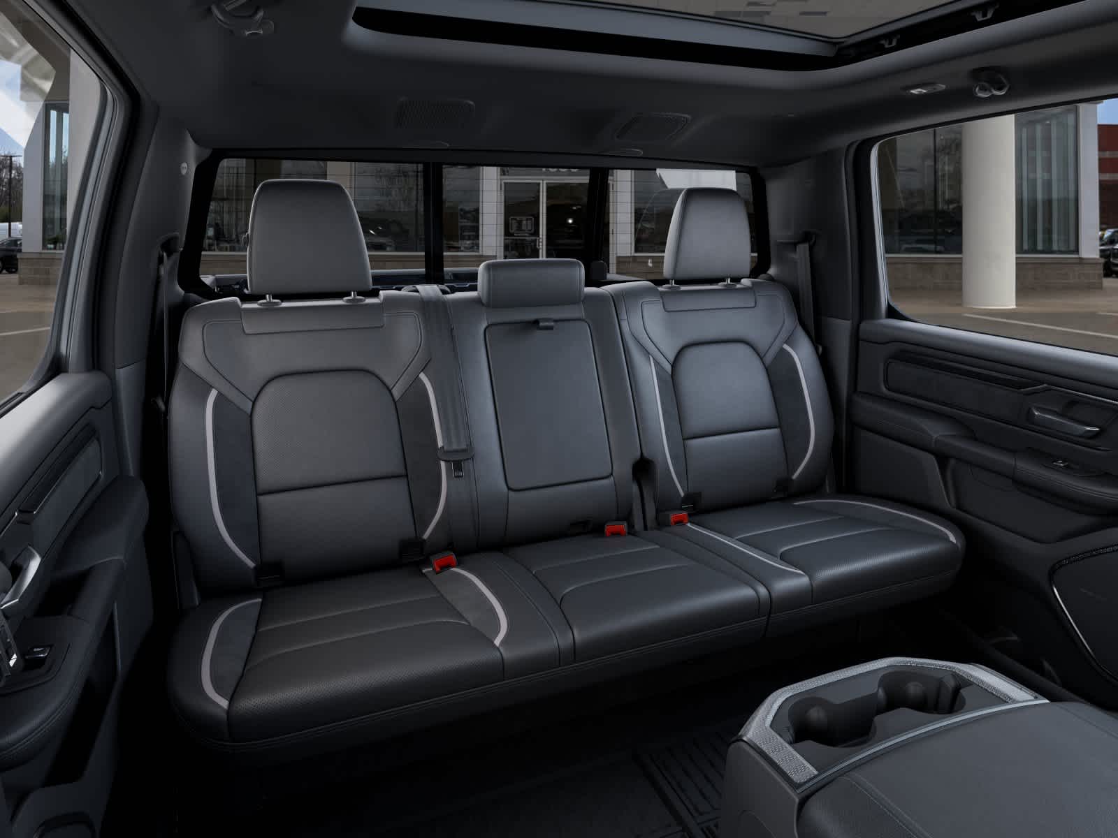 G/T PACKAGE Floor Console, Under Seat Lighting, G/T Decal, Leather Wrapped Shift Knob, Leather-Wrapped Steering Wheel, Steering Wheel Mounted Shift Control, G/T Exhaust, GT Interior Theme, MOPAR Bright Pedal Kit, Performance Pages, REBEL LEVEL 2 EQUIPMENT GROUP Power Adjustable Pedals w/Memory, Front Passenger Interactive Display, Power 2-Way Passenger Lumbar Adjust, Auto Power-Folding Mirrors, 115V Auxiliary Rear Power Outlet, Media Hub w/2 Charge Only USBs, Proximity Approach/Departure Lamps, Power Adjust 8-Way Front Passenger Seat, Security Alarm, Dual Wireless Charging Pad, harman/kardon® 19 Speaker Premium Sound, Rear Window Defroster, Rain Sensitive Windshield Wipers, Auto Dim Exterior Driver Mirror, Accent Color Door Handles, Heated Second Row Seats, Black Painted Exterior Mirrors Caps, Exterior Mirrors Approach Lamps, Smartphone As A Key Capable, 14.4 Touchscreen Display, Accent Color Premium Power Mirrors, Exterior Mirrors w/Supplemental Signals, Exterior Mirrors Courtesy Lamps, Radio: Uconnect 5 Nav w/14.4, DUAL-PANE PANORAMIC SUNROOF Dome Dual LED Reading Lamp, TRI-FOLD TONNEAU COVER, MOPAR BLACK TUBULAR SIDE STEPS, BED UTILITY GROUP MOPAR Spray In Bedliner, MOPAR 4 Adjustable Cargo Tie-Down Hooks, Exterior 115V AC Outlet, TRANSMISSION: 8-SPEED AUTOMATIC (8HP75) (STD). Ram Rebel with Diamond Black Crystal Pearlcoat exterior and Black interior features a Straight 6 Cylinder Engine with 420 HP at 5200 RPM*.