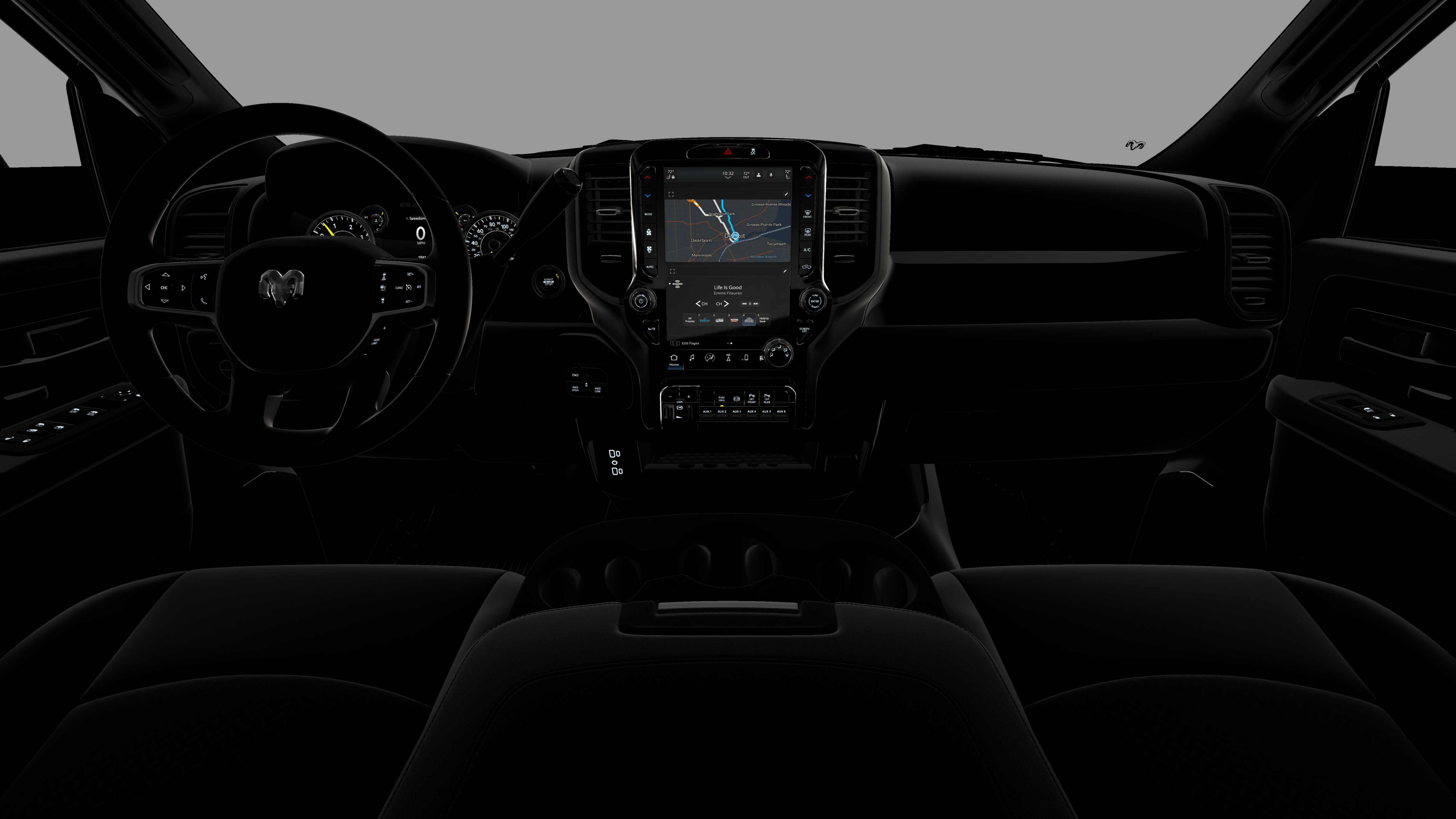- Radio w/Seek-Scan, Clock, Speed Compensated Volume Control, Aux Audio Input Jack, Voice Activation, Radio Data System and Uconnect External Memory Control
