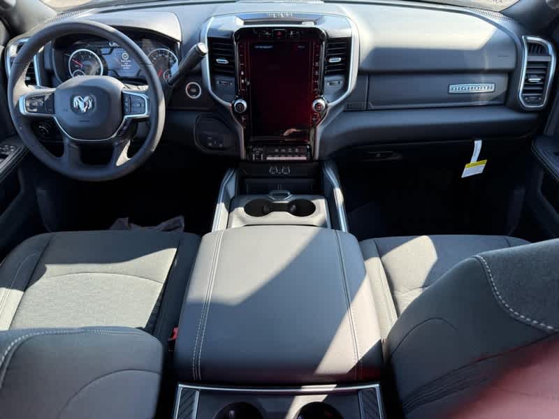BIG HORN LEVEL 2 PLUS EQUIPMENT GROUP Surround View Camera System, Blind Spot & Cross Path Detection, LED Tail Lamps, Red Tail Lamp Bezels, For Details Visit DriveUconnect.com, Power Adjustable Pedals, For More Info, Call 800-643-2112, Emergency Vehicle Alert System (EVAS), 12 Touchscreen Display, Glove Box Lamp, Auto Power-Folding Mirrors, Footwell Courtesy Lamp, Drowsy Driver Detection, Heated Front Seats, MOPAR Deployable Bed Step, Exterior 115V AC Outlet, Alexa Built-In, Active Lane Management System, Forward & Reverse Utility Lights, Locking Lower Glove Box, Remote Start System, 9 Alpine Speakers w/Subwoofer, Disassociated Touchscreen Display, Dual Wireless Charging Pad, Trailer Tire Pressure Monitoring System, Dual Glove Boxes, 115V Auxiliary Front Power Outlet, Universal Garage, DUAL REAR WHEELS Clearance Lamps, Tires: LT235/80R17E BSW All Season, 17 Steel Spare Wheel, Box & Rear Fender Clearance Lamps, 6000# Front Axle w/Hub Ext, Wheels: 17 x 6.0 Polished Aluminum, Nexen Brand Tires, GVWR: 14,000 lb, Rear Wheelhouse Liners, PAINTED FLAT CAB-LENGTH SIDE STEPS, BLACK, PREMIUM CLOTH BUCKET SEATS Bucket Seats, Rear 60/40 Folding Seat, Power Adjust 8-Way Driver Seat, Folding Flat Load Floor Storage, Front Seat Back Map Pockets, Power 2-Way Driver Lumbar Adjust, Full Length Upgraded Floor Console, TRANSMISSION: 8-SPEED TORQUEFLITE HD AUTOMATIC, ENGINE: 6.7L I6 CUMMINS HO TURBO DIESEL Selective Catalytic Reduction (Urea), Dual 730 Amp Maintenance Free Batteries, Cummins Turbo Diesel Badge, Heavy Duty Engine Cooling, Current Generation Engine Controller, Diesel Exhaust Brake, Supplemental Heater, 3.42 Axle Ratio, Front Bumper Sight Shields, Capless Fuel Fill w/o Discriminator. Ram Big Horn with Diamond Black Crystal Pearlcoat exterior and Black interior features a Straight 6 Cylinder Engine with 405 HP at 5600 RPM*.