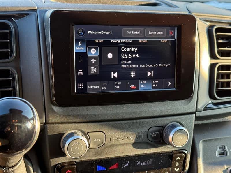 CONVENIENCE GROUP Front Fog Lamps, Rear Cargo LED Lamp, Power Folding/Heated Mirrors, Power-Folding Mirrors, Exterior Mirrors w/Heating Element, Power Adjust Mirrors, Power-Adjustable Convex Aux Mirrors, BLACK, VINYL BUCKET SEATS, PARKSENSE REAR PARK ASSIST SYSTEM, ADAPTIVE CRUISE CONTROL W/STOP & GO, TRANSMISSION: TORQUEFLITE FWD (STD), ENGINE: 3.6L V6 24V VVT (STD). Ram Tradesman with Bright White Clearcoat exterior and Black interior features a V6 Cylinder Engine with 276 HP at 6400 RPM*.