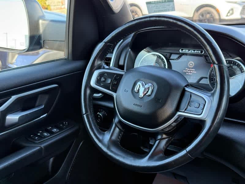 BIG HORN LEVEL 2 EQUIPMENT GROUP Radio: Uconnect 4 w/8.4 Display, Rear Window Defroster, ParkSense Front/Rear Park Assist w/Stop, Rear View Auto Dim Mirror, Power Adjustable Pedals, Rear Power Sliding Window, Rear Dome w/On/Off Switch Lamp, Glove Box Lamp, Power 4-Way Driver Lumbar Adjust, 115V Auxiliary Rear Power Outlet, Power 8-Way Driver Seat, 2 USB Full Function/Charge Only Media Hub, Heated Front Seats, Heated Steering Wheel, Foam Bottle Insert (Door Trim Panel), Class IV Receiver Hitch, Dampened Tailgate, Security Alarm, Black Premium Power Mirrors, Big Horn IP Badge, Remote Start System, SiriusXM Satellite Radio, 400W Inverter, Air Conditioning ATC w/Dual Zone Control, 115V Auxiliary Power Outlet, Universal Garage Door Opener, 2nd Row In Floor Storage Bins, Sun Visors, NIGHT EDITION Tires: 275/55R20 OWL All Season, Black Headlamp Bezels, Body Color Premium Power Mirrors, Body Color Door Handles, Exterior Mirrors Courtesy Lamps, Auto Dim Exterior Driver Mirror, Black Exterior Truck Badging, Anti-Spin Differential Rear Axle, Wheels: 20 x 9.0 Premium Paint/Polished, Exterior Mirrors w/Memory, Grille Surround 1 Black Texture 2 Black, Body Color Exterior Mirrors, Black Interior Accents, Dual Exhaust w/Black Tips, Power-Folding Mirrors, Body Color Front Bumper, Body Color Rear Bumper w/Step Pads, BLACK TUBULAR SIDE STEPS, REMOTE START SYSTEM, TRANSMISSION: 8-SPEED AUTOMATIC (850RE) (STD), ENGINE: 3.6L V6 24V VVT ETORQUE UPG I (STD). Ram Big Horn with Granite Crystal Metallic Clearcoat exterior and Black interior features a V6 Cylinder Engine with 305 HP at 6400 RPM*.