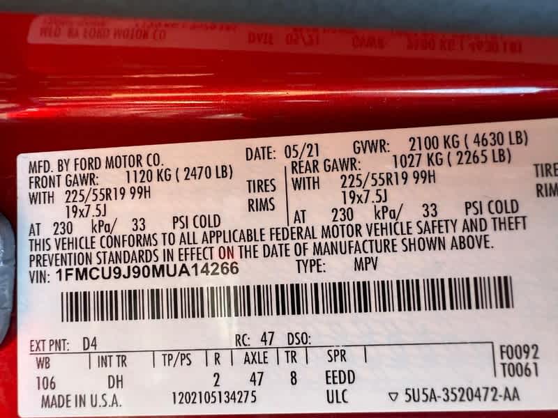 TITANIUM ELITE PACKAGE Front & Rear Floor Mats, embroidered Escape logo, Wireless Charging Pad, Head-Up Display, Wheels: 19 Luster Nickel-Painted Aluminum, Leather Wrapped Steering Wheel, Chrome 5-Bar Upper Grille w/Chrome Surround, Front & Rear Silver Skid Plates, Panoramic Vista Roof, power open/close w/power shade, Black Roof-Rack Side Rails, CLASS II TRAILER TOW PACKAGE, ENGINE: 2.0L ECOBOOST auto start-stop technology (STD). Ford Titanium with Rapid Red Metallic Tinted Clearcoat exterior and Ebony/Sandstone interior features a 4 Cylinder Engine with 250 HP at 5500 RPM*.