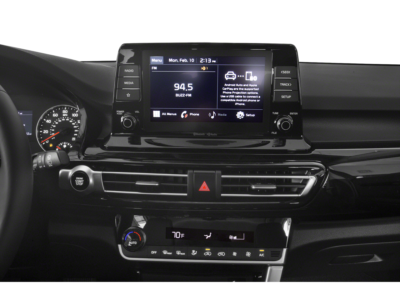 Back-Up Camera, iPod/MP3 Input, Bluetooth®, Aluminum Wheels, Apple CarPlay® Kia S with Snow White Pearl exterior and Black interior features a 4 Cylinder Engine with 146 HP at 6200 RPM*.