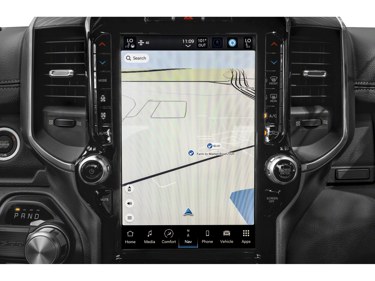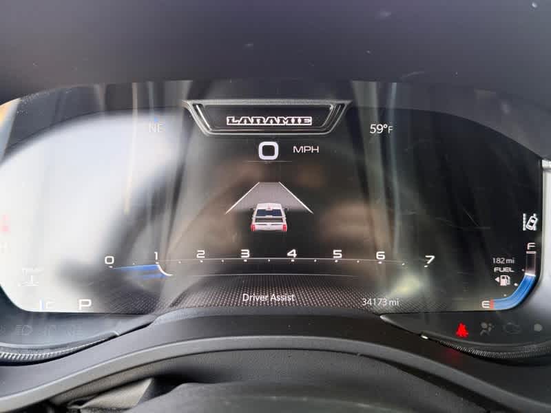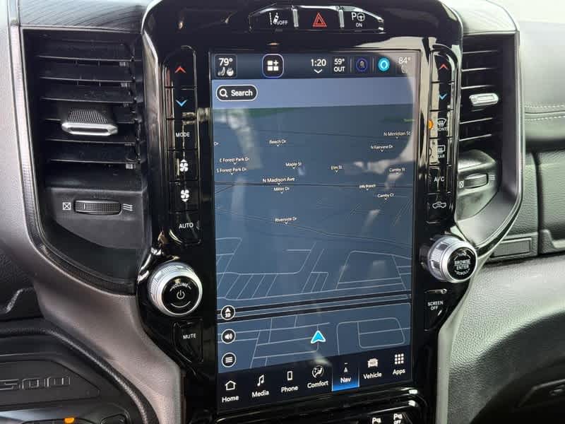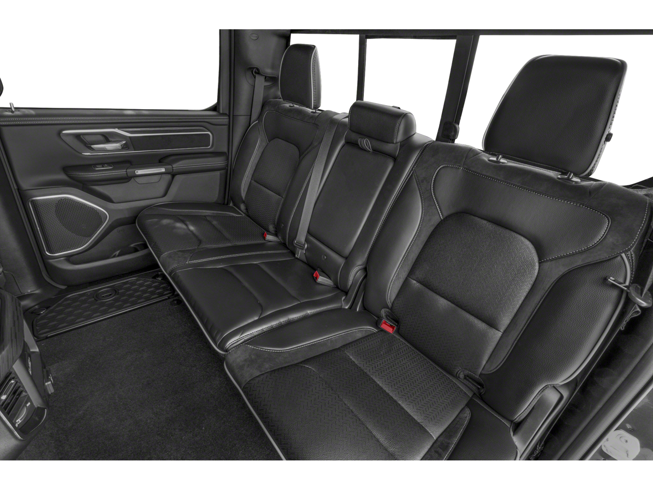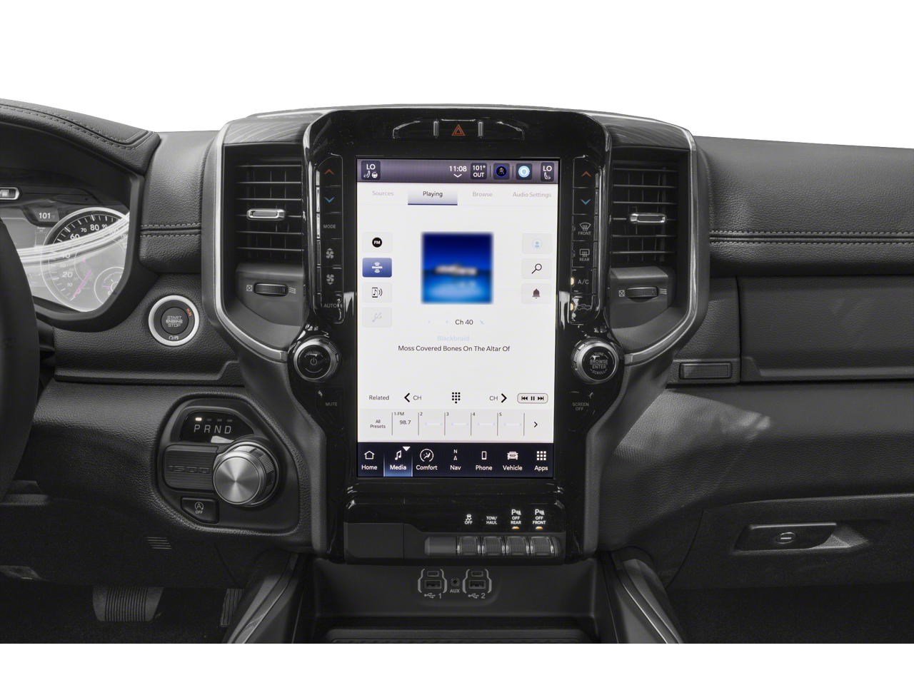 LARAMIE LEVEL B EQUIPMENT GROUP Rear Window Defroster, Blind Spot & Cross Path Detection, Rain Sensitive Windshield Wipers, ParkSense Front/Rear Park Assist w/Stop, Rear Power Sliding Window, 12 Touchscreen Display, Rear Underseat Compartment Storage, Front LED Fog Lamps, LED Reflector Headlamps, Foam Bottle Insert (Door Trim Panel), Radio: Uconnect 5 Nav w/12.0 Display, Remote Tailgate Release, harman/kardon® 19 Speaker Premium Sound, Auto High Beam Headlamp Control, Electric Shift On Demand Transfer Case, Front Door Accent Lighting, 2nd Row In Floor Storage Bins, Rear Door Accent Lighting, NIGHT EDITION Accent Color Premium Power Mirrors, Black Headlamp Bezels, Sport Performance Hood, Wheels: 22 x 9 Forged Aluminum, Tires: 285/45R22XL BSW All Season, Black Exterior Truck Badging, Accent Color Door Handles, Black Interior Accents, Dual Exhaust w/Black Tips, Body Color Front Bumper, Grille Surround 3 Black Texture 2 Black, Body Color Rear Bumper w/Step Pads, RAM Grille Badge - Black, Black Painted Exterior Mirrors Caps, G/T PACKAGE Leather Wrapped Shift Knob, Leather-Wrapped Steering Wheel, Steering Wheel Mounted Shift Control, Sport Performance Hood, MOPAR Bright Pedal Kit, MOPAR Cold Air Intake System, MOPAR Off Road Truck Rubber Floor Mats, Passive Cold End Exhaust, Floor Console, G/T Decal, Cluster 12 TFT Color Display, GT Interior Theme, 3.92 Rear Axle Ratio, Performance Pages, ENGINE: 5.7L V8 HEMI MDS VVT ETORQUE Active Noise Control System, Heavy Duty Engine Cooling, Passive Tuned Mass Damper, GVWR: 7,100 lbs, Dual Rear Exhaust w/Bright Tips, HEMI Badge, 23 Gallon Fuel Tank, 18 Aluminum Spare Wheel, 4-CORNER AIR SUSPENSION, ADVANCED SAFETY GROUP Adaptive Cruise Control w/Stop & Go, Auto High Beam Headlamp Control, Surround View Camera System, Parallel & Perp Park Assist w/Stop, Tailgate Ajar Warning Lamp, Pedestrian Emergency Braking, Lane Keep Assist, DUAL-PANE PANORAMIC SUNROOF LED Dome/Reading Lamp, Dome Dual LED Reading Lamp, TECHNOLOGY GROUP Head Up Display, LED CHMSL Lamp, Digital Rearview Mirror, POWER RUNNING BOARDS, BED UTILITY GROUP MOPAR Spray In Bedliner, MOPAR 4 Adjustable Cargo Tie-Down Hooks, Pick-Up Box Lighting, TRI-FOLD TONNEAU COVER, CLASS IV RECEIVER HITCH, TRANSMISSION: 8-SPEED AUTOMATIC (8HP75), ANTI-SPIN DIFFERENTIAL REAR AXLE. Ram Laramie with Ivory White Tri-Coat Pearlcoat exterior and Black interior features a 8 Cylinder Engine with 395 HP at 5600 RPM*.